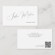 Elegant modern handwritten calligraphy script name feminine generic black and white business card template with scanning QR code to website, catalog, or portfolio. Suitable for promotional marketing, personal branding, and networking for small business or independent business professionals: makeup artists, home designers, personal stylists, events wedding planners, lifestyle bloggers, writers, filmmakers, screenwriters, and artists.