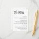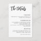 Immerse your guests in the allure of clean lines and modern aesthetics with this fully customizable details card. Your unique style and wedding details take center stage, adorned with a touch of refined elegance. The sleek black typography on pristine white not only promises a striking first impression but also ensures that every detail is presented with clarity and grace, maintaining the collection's commitment to understated beauty.