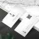 Stylish modern black and white typography monogram initials small business or freelancer branding business cards with scanning QR code featuring double business name initial letters logo.