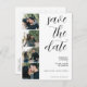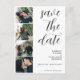 Trendy minimalist simple elegant black and white modern typography script wedding save the date postcard with 4 custom photo collage and scanning QR CODE link to website or photo gallery (JUST INSERT YOUR LINK AND THE CODE IS AUTOMATICALLY GENERATED). +++++++++++ Suitable for any season and theme. ++++++++++ Easy to personalize with your pictures and details on both sides!