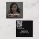 Elegant minimalist trendy professional photo square business card with your own automatically generated QR CODE, a black transparent overlay, and a chic contemporary script. ++++++++++++ Easy to personalize with your code, details and photo. +++++++++++ Suitable for an artist, actor, model, dancer, actress, photographer, wedding planner, hair stylist, makeup artist, fashion designer, graduate.