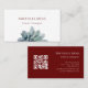 Modern Botanical greenery QR code business card, with a trendy succulent design on a white and red background. With customizable red and white lettering, you can add your own information. You add your website to the QR code field for your customers to scan. Great for promoting your design business with an elegant style.