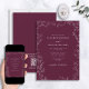 QR Code Modern Burgundy Minimal Leaf Wedding Invitation
