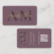 QR Code Modern Minimalist Monogram Vertical Purple Business Card