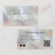 Customize this "QR Code Modern Scannable Script Pearl Glass Business Card", featuring a name in a beautiful modern script, and last name on a mother-of-pearl color glass effect background. Add your name, professional title, business name or description, contact information, social media username, icons (Instagram, Facebook), address, and QR code URL. Please get in touch with the store designer for further customization if needed.