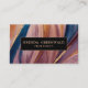 Modern, girly elegant networking card featuring digital image of liquid marble print in shades of blue, pink, purple gold and rose gold. Black stripe overlay. Great for beauty, fashion , entertainment and event professionals.