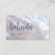 This elegant luxury business card features an iridescent mother-of-pear design and a big handwritten calligraphy for your name. On the reverse side is a scannable qr code and a custom template for name, address and socials. This professional glam business card is perfect for salon, make up artists, beauty, jewelry and more.