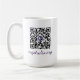 This mug is adorned with the QR code for madgravitystudio.org. Offering free-of-cost, Creative Commons music designed for videos, podcasts, and gaming.
