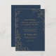 QR Code Navy Blue Gold Minimal Leaf Wedding Invitation