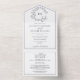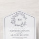 QR Code Navy Blue Leafy Crest Monogram Wedding All In One Invitation