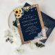 QR Code Navy Blue Sunflower Wood Lace Wedding Invitation