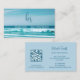 Ocean wave photo business card. Your initials in an elegant modern handwritten script. The background showcases an photo of a wave and the sky. Templates for your name, title, phone number, mail and website address, QR-code to your website or social media account. This business card is perfect for beach property realtors, beach-based businesses like beach boutique, beach hotel, beach real estate agent, as well as spa and massage therapy.
