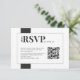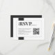 This reply card is easily customizable with your online RSVP information and your own QR Code to send your guests directly to your wedding website on the front of the card, and the bride and groom's white monograms on the solid dark grey reverse.