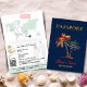 A modern 'passport style' folded invitation combines creativity, elegance, and functionality, making this an excellent choice for planning your tropical beach destination wedding. Add the URL of your wedding website which will update the QR code, (or delete it if not required). Guests can simply scan the QR code to access a wealth of information on all of your wedding details and updates etc. A convenient, budget-friendly invite, without the need for adding separate RSVP enclosures. Click on personalize/customize for further editing.