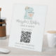 A cute blue cake mixer with flowers and your store name decorates this bakery QR Code pedestal sign. Personalize it with your store name adn QR code. Designed for you by Blackberry Boulevard.