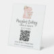 A cute pink cake mixer with flowers and your store name decorates this bakery QR Code pedestal sign. Personalize it with your store name adn QR code. Designed for you by Blackberry Boulevard.
