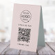 This feminine blush pink table tent style business sign designed as a clean scan to pay display that works across retail counters, cash wrap areas, pop up shops, salons, cafes and event stalls. The layout uses a modern minimalist design with plenty of space so your QR code and brand details stay clear and easy to read. The template allows you to add your company logo or a small graphic or photo, your QR code link and any custom text you need for quick payment, tipping, ordering or contact access. The simple uncluttered design fit seamlessly into almost any brand style from luxury boutiques to local makers. Customers can scan instantly which helps speed up checkouts and reduces friction for both small and large businesses. A versatile and modern sign that adapts easily to your business needs.