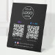 A simple custom black business scan to pay by Zelle or Paypal QR code pedestal sign in a modern minimalist style. The versatile template can easily be updated with your company logo, graphic or photo, 2 QR codes, custom text, payment icons and social media icons (Facebook & Instagram). The icons can easily be replaced with your own as an added extra to make a truly bespoke professional design for your own business! For example you could include other social media account (such as Twitter, Linkedin, WhatsApp, YouTube) or payment icons (such as Venmo, CashApp, Bitcoin) and so much more! Need help? Feel free to contact me using the message button on the product page. I am happy to help with your personalization such as adding different icons. I can adapt the template to suit your business.