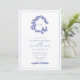 QR Code Periwinkle Leafy Crest Monogram Wedding Invitation