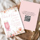 QR Code Petals & Prosecco Pink Bow Bridal Shower Invitation