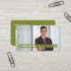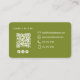 Modern horizontal business card design featuring a clean olive green layout and scannable QR code for instant connection. Includes space for a professional photo, name, title, and contact details, making it perfect for consultants, realtors, and business professionals. A sleek, modern, and easy way to share your information.