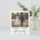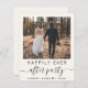 Budget-friendly light cream elopement or private wedding announcement and all-in-one wedding reception invitation. The front features your photo, "Happily Ever After Party" in a mix of simple typography and a stylish script with swashes and your first names and wedding or reception date joined together by a heart. On the back, personalize your details, input your wedding website address to create a QR code for guests to scan to see your wedding photos, all of the details and to RSVP online, and add your names in a signature-like script. This budget semi-gloss paper is similar in weight to photo paper. A larger 5x7 traditional card stock version is also available (message us for the link).