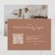 Less hassle when you invite your guests online with a QR code that sends them directly to your wedding website for additional details. The design features a minimalist, simple terracotta color creative with a modern very elegant calligraphy Wedding script. Easily replace with your own QR code and your personal information of choice, including your photo. There are QR code generators online if needed. Simply place the keywords "QR code creator" into Google search and lots of free options will appear for you to choose from.