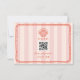 Wedding RSVP with red frame and shell illustration over light pink stripe background with red text on front and back. Personalize the text and QR code.