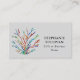 This stylish professional business card is decorated with a colorful mosaic design on a pale gray background.