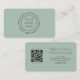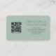 A simple custom QR code business template in a modern style that can be easily updated with your company logo and text. The business card features a sage green background with dark grey details for a sleek and professional way to leave a lasting impression. The clean and modern sans-serif font used for all the details adds a touch of elegance to this already sophisticated design. But what sets this business card apart is the innovative addition of a QR code, allowing you to provide even more information to your clients seamlessly and efficiently. Customize the "call to action" for the QR code, whether it's directing potential customers to your website, portfolio, or social media profiles. With our template business card, you can make a lasting impression while maintaining a professional edge. If you need any help personalizing this product, please contact me using the message button below and I'll be happy to help.