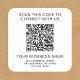 Modern promotional sticker for your business or organization. Easily create a scannable QR code linked to your website, and add two lines of text, such as "scan to connect with us" and your company name, address and phone number.