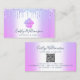 Present your best self to your clients, with these elegant, sophisticated, simple, and modern custom name QR code business cards. A sparkly, purple cupcake, script handwritten typography and glitter drips overlay a faux metallic purple ombre background. Personalize with your full name and business on the front. Fill in the back side with your personal QR code, phone numbers, email, website, and social media accounts. Makes a chic, professional, and stylish statement wherever you go.