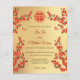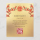 Red cherry blossom branches and two butterflies on a gold background. Chinese wedding invitation with a red double happiness symbol.