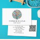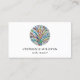 This reiki master's business card is decorated with a colorful mosaic tree of life design.