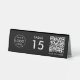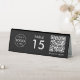 A simple custom black QR code resturaunt or cafe table tent table number double sided business sign template in a modern minimalist style which can be easily updated with your company logo, QR code and custom text.