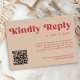 QR code Retro groovy bold red beige online wedding RSVP Card