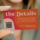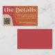 Abstract shapes retro vintage 70s style boho unique budget wedding scanning QR code wedding website enclosure card with "the details" bold typography in a vibrant trendy modern red, beige tan and orange chic color palette. +++++++ Please note that all the colors are changeable. +++++++++ Bigger sizes available. ++++++++++++ Matching invitation and stationery are available in the collection.