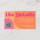 Abstract shapes retro vintage 70s style unique budget wedding scanning QR code wedding website enclosure card with "the details" bold typography in a vibrant trendy modern hot pink magenta and orange chic color palette. +++++++ Please note that all the colors are changeable. +++++++++ Bigger sizes available. ++++++++++++ Matching invitation and stationery are available in the collection.