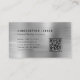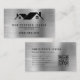 Help your roofing business stand out from the crowd with this bold, eye-catching black and silver business card. A silver faux brushed metal image provides the background for a black roof logo and black text to highlight your business name, contact information and other details. A QR code on the back takes customers and clients to your website.
