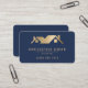 Help your roofing business stand out from the crowd with this bold, eye-catching navy blue and gold business card featuring rounded corners. The gold faux brushed metal roof logo is paired with gold-colored text to highlight your business name, contact information and other details. A QR code on the back takes customers and clients to your website.