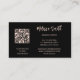 The top portion of the front side features a rose gold intricate floral mandala on a black background. The bottom portion features a black text field with an elegant script. At the backside is a scannable qr code for your website. Perfect for salon, hair-and makeup, beauty, yoga teacher, boutique or any female entrepreneur.