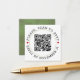 QR code online RSVP green round border and red hearts wedding enclosure card. Your guests can scan the QR code on this card to online RSVP. The backside covers a green stained background.