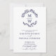 QR Code RSVP Navy Blue Monogram Wreath Wedding Invitation