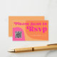 Abstract shapes retro vintage 70s style unique budget wedding scanning QR code online RSVP MINI SIZE enclosure card with "please scan to RSVP" bold typography in a vibrant trendy modern hot pink magenta and orange chic color palette. +++++++ Please note that all the colors are changeable. +++++++++ Bigger sizes available. ++++++++++++ Matching invitation and stationery are available in the collection.