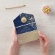 Elegant rustic navy blue wood and rose gold all-in-one wedding invitation featuring floral accents, soft string lights, and a personalized monogram. This invitation doubles as an envelope and includes a QR code for RSVP and a link to your wedding website — perfect for couples who love a balance of rustic charm and modern convenience. The deep navy wood texture with shimmering rose gold florals makes it ideal for fall, barn, or evening weddings.