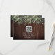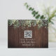 Wedding RSVP with botanical greenery string light design at top over wood background with white text on front and back. Personalize the QR code.