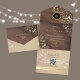 Charming rustic wood and rose gold all-in-one wedding invitation featuring elegant floral artwork, soft string lights, and a modern QR code for RSVP. The warm wood background paired with shimmering rose gold details creates a romantic and cozy feel, perfect for fall or barn weddings. This eco-friendly design folds into its own envelope and includes a personalized monogram on the top flap. Ideal for couples who love rustic charm with a touch of luxury.