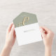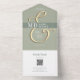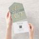 Simple, contemporary, minimal, unique sage green wedding all-in-one invitation with photo, QR code and trendy elegant gold ampersand - monogram with initials of bride and groom.