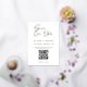 Less hassle, no missing mail when you invite your guests online with a QR code that sends them directly to your wedding website for additional details. The design features a minimalist, simple black and white creative with a modern very elegant calligraphy Save Our Date script in real gold foil. Easily replace with your own QR code and your personal information of choice. There are QR code generators online if needed. Simply place the keywords "QR code creator" into Google search and lots of free options will appear for you to choose from.