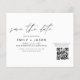 QR Code Modern and Elegant Landscape Horizontal Three (3) Photo Save the Date Wedding Magnet with hand lettered script typography. The save the date invitation magnet includes script typography and chic and simple design that you can add your customized engagement photograph picture to.